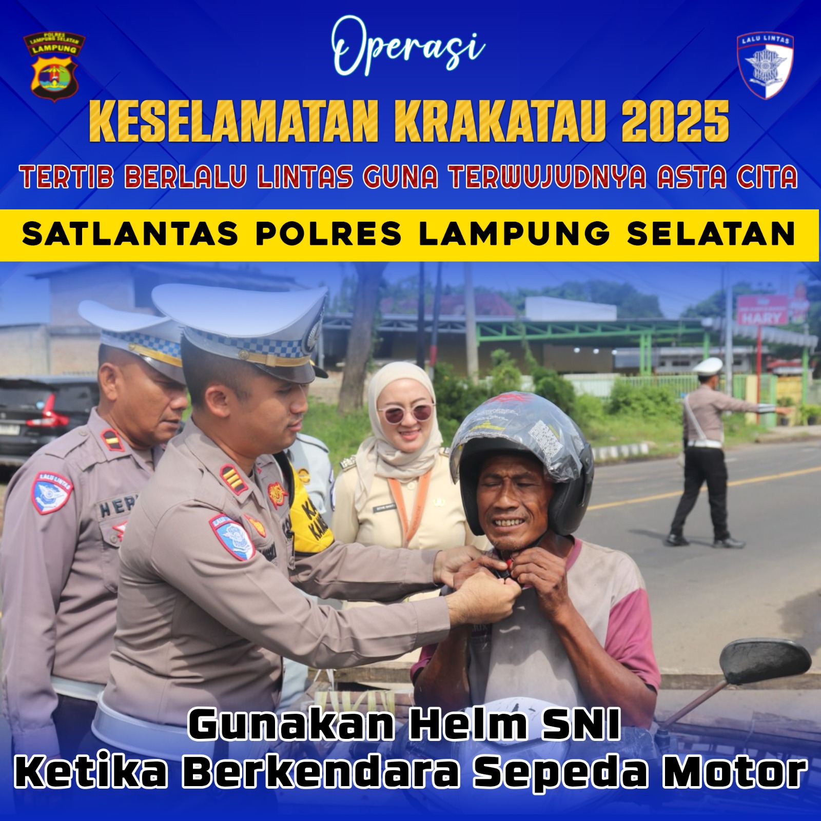 Kasat Lantas Polres Lampung Selatan AKP R. Manggala SM., S.IK., MH., CPHR Dan Jajaran Melaksanakan Kegiatan Simpatik Gabungan Bersama Stake Holder Terkait Dalam Rangka Ops Keselamatan Krakatau Tahun 2025. Di depan Kantor Bulog Lampung Selatan, Pada Hari Selasa, 11 Februari 2025, Pukul 09.00 WIB