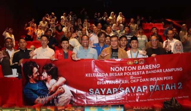LAMPUNG – Kapolresta Bandar Lampung Kombes Pol Alfret Jacob Tilukay, S.I.K., M.Si bersama WaKapolresta AKBP Erwin Irawan dan para Pejabat Utama (PJU) dan Kapolsek Jajaran Polresta Bandar Lampung menghadiri acara nonton bersama film Sayap-Sayap Patah 2: Olivia di Studio XXI Mall Kartini (Moka), Rabu malam (14/5/2025).