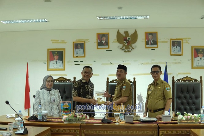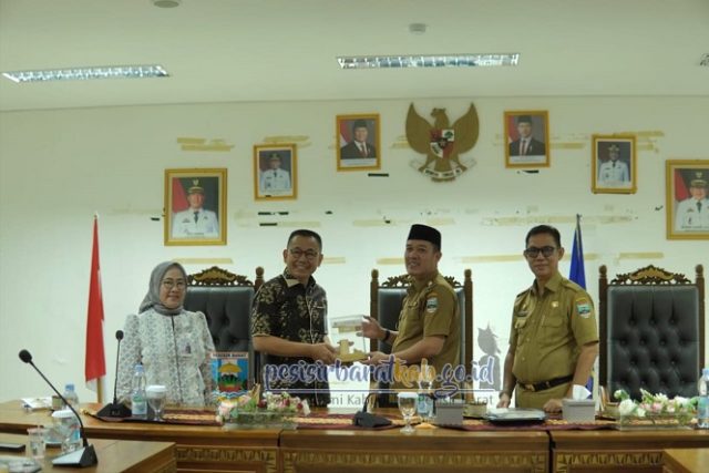 Bupati Pesisir Barat (Pesibar), Dedi Irawan, menyambut kunjungan Direktur Utama Bank Pembangunan Daerah (BPD) Lampung, di ruang rapat Bupati, Lantai 4 Gedung Marga Sai Batin Komplek Perkantoran Pemkab Pesibar, Selasa (15/7/2025).
