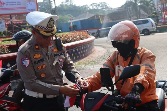 “Hari ini kami membagikan bendera merah putih kepada pengendara, tujuannya membangkitkan semangat nasionalisme dalam rangka menyambut Hari Kemerdekaan RI Ke-80,” Kata Kompol Ridho, Kamis (7/8/2025).