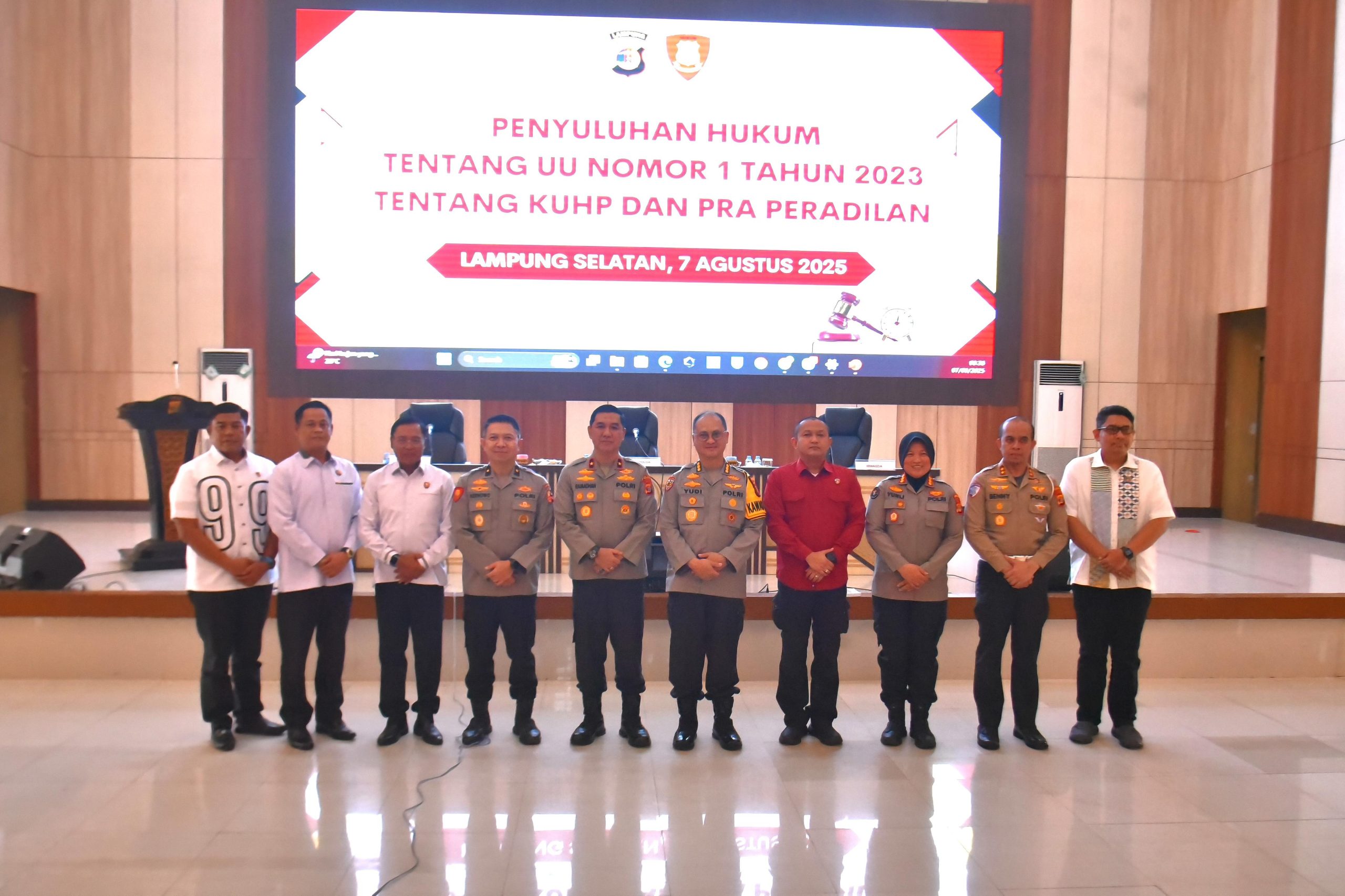 Lampung – Dalam rangka meningkatkan pemahaman aparat penegak hukum terhadap perkembangan peraturan perundang-undangan, Polda Lampung laksanakan Penyuluhan Hukum tentang Undang-Undang Nomor 1 Tahun 2023 tentang Kitab Undang-Undang Hukum Pidana (KUHP) serta Pra Peradilan. Kamis(7/8/25)