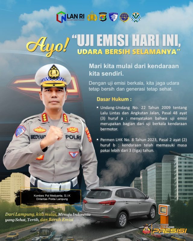 Dalam poster resmi yang dirilis Ditlantas Polda Lampung, Kombes Pol Medyanta menegaskan bahwa kendaraan bermotor merupakan salah satu kontributor utama pencemaran udara di wilayah perkotaan. Oleh karena itu, uji emisi secara berkala menjadi langkah nyata dalam menciptakan udara bersih dan menjaga kesehatan generasi masa depan.