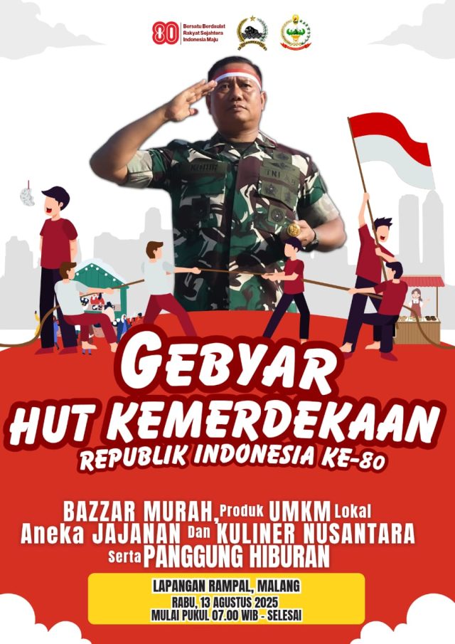 Malang, 10 Agustus 2025 – Lapangan Rampal, Malang, akan menjadi pusat kemeriahan menjelang Hari Ulang Tahun ke-80 Kemerdekaan Republik Indonesia. Pada Rabu, 13 Agustus 2025, Korem 083/Baladhika Jaya akan menggelar Gebyar HUT Kemerdekaan mulai pukul 07.00 WIB hingga selesai, terbuka untuk seluruh masyarakat.