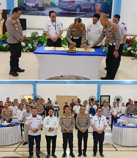 Brigjen Ahmad Ramadhan juga menjelaskan penandatanganan nota kesepahaman atau MOU tentang penguatan kolaborasi penegakan dan edukasi uji emisi kendaraan bermotor untuk udara bersih dan masyarakat sehat sebuah langkah konkret dan kolaboratif untuk mewujudkan lampung yang lebih sehat ramah lingkungan dan tangguh menghadapi tantangan masa depan polusi udara akibat kendaraan motor.