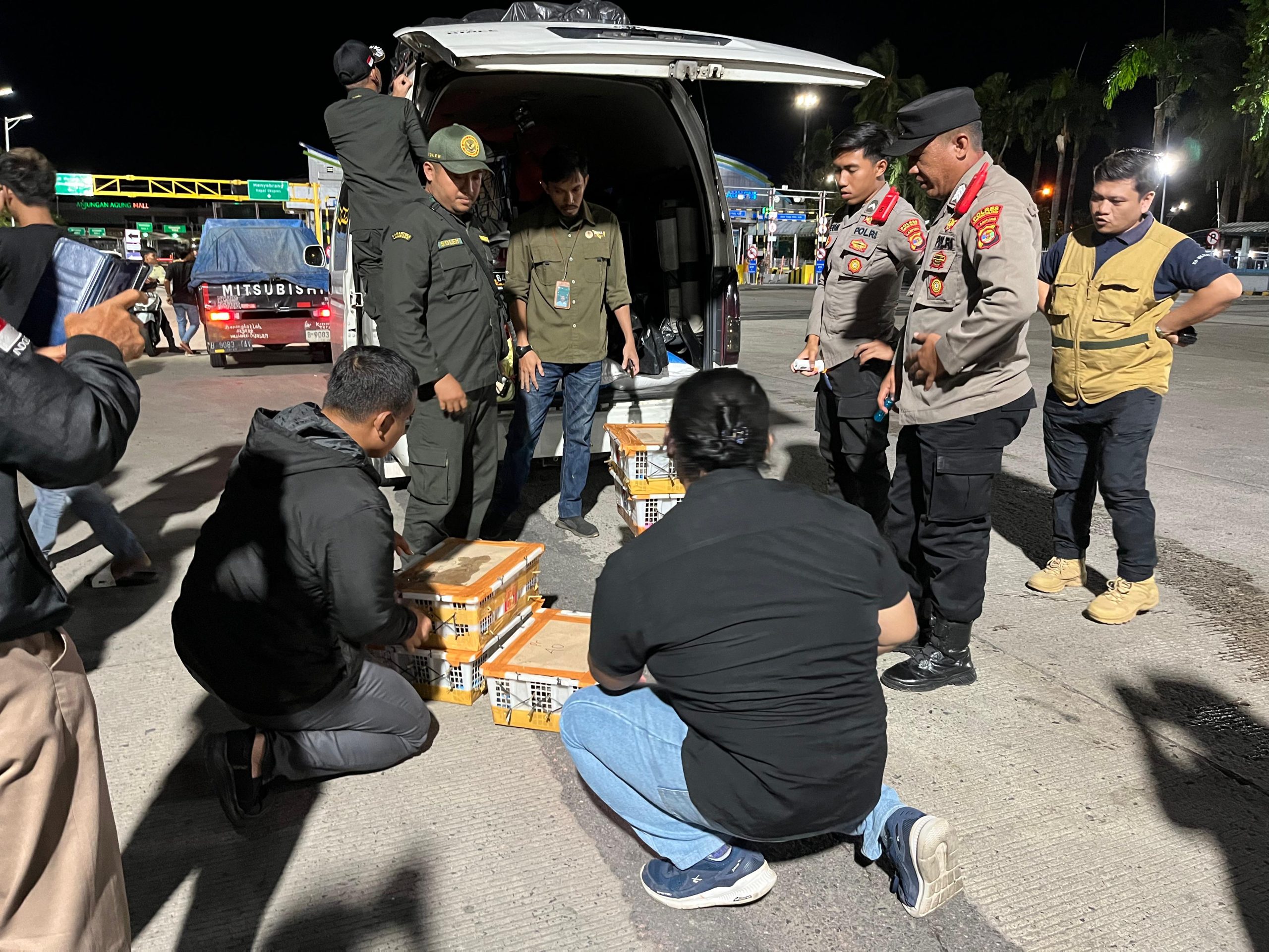 Tim gabungan Kepolisian Sektor Kawasan Pelabuhan (KSKP) Bakauheni bersama BKSDA Lampung, Karantina Lampung dan Jaringan Satwa Indonesia (JSI) berhasil amankan ratusan ekor satwa liar jenis burung di area pemeriksaan seaport Interdiction pelabuhan Bakauheni, Jum’at (12/9/25) sekira pukul 21.00 Wib.