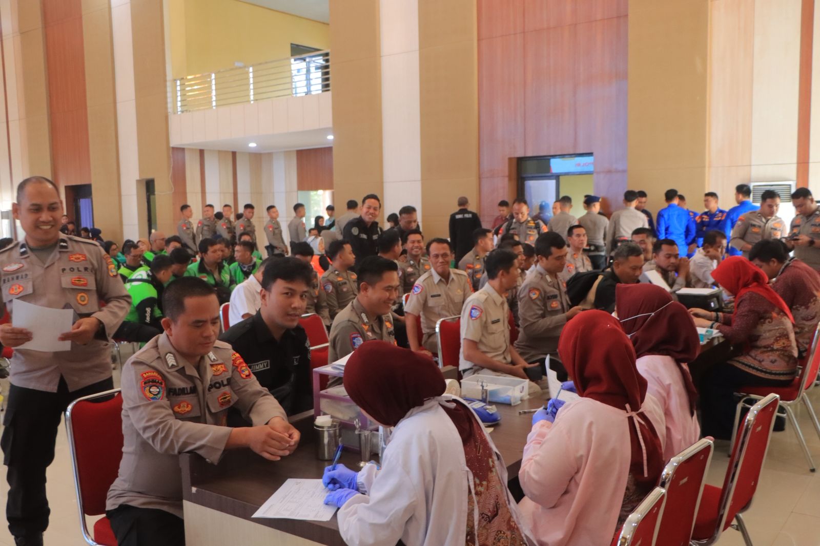 Kegiatan yang berlangsung di Gedung Serba Guna (GSG) Polda Lampung ini bekerja sama dengan Palang Merah Indonesia (PMI) Provinsi Lampung untuk memastikan stok darah di masyarakat tetap aman dan terpenuhi.