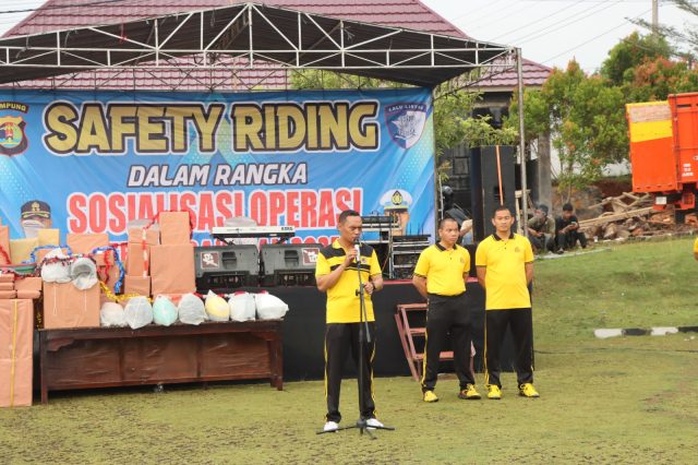 Lampung Utara – Kepolisian Resor (Polres) Lampung Utara melakukan sosialisasi Ops Zebra Krakatau 2025 dengan menggelar kegiatan Safety Riding di halaman mapolres setempat, Sabtu (15/11/25).