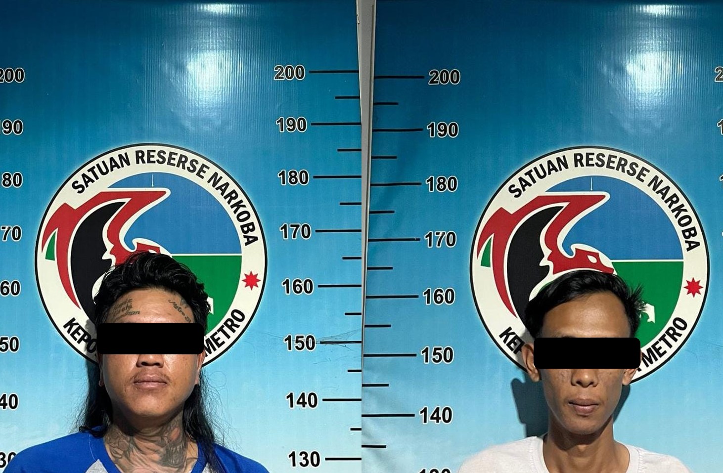 Kedua tersangka masing-masing berinisial B.S. (32, asal Hadimulyo Timur, Metro Pusat, Kota Metro) dan R.R.P. (22, asal Adirejo, Pekalongan,Lampung Timur) diamankan petugas saat berada di dalam kamar kost. Dari hasil penggeledahan, petugas menemukan sejumlah barang bukti yang berkaitan dengan penyalahgunaan narkotika.