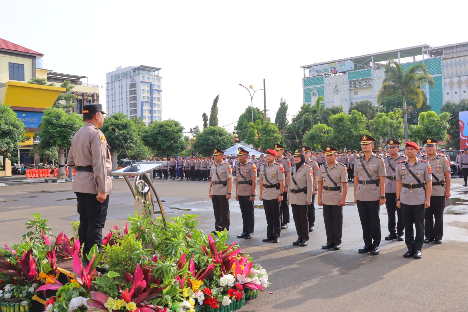 Upacara sertijab berlangsung khidmat dan tertib, diikuti oleh pejabat utama, perwira, personel, serta Bhayangkari Cabang Kota Bandar Lampung.
