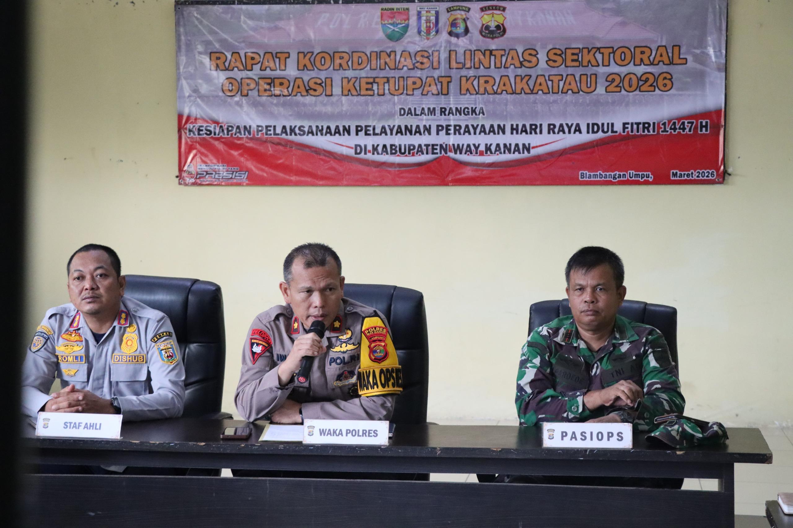 Dalam upaya persiapan pengamanan arus mudik dan balik Hari Raya Idul Fitri 1447 Hijriah Polres Way Kanan Polda Lampung menggelar rapat koordinasi lintas (Rakor) sektoral, di Aula Adi Pradana Polres Way Kanan. Jum’at (6/3/2026).