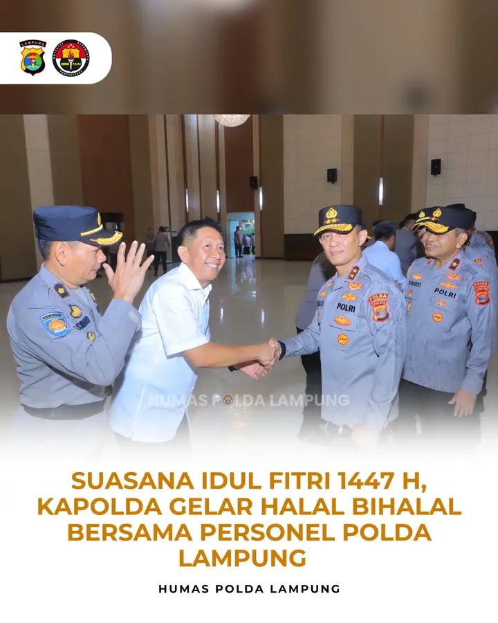 Kapolda Lampung juga mengajak seluruh anggota untuk menjadikan semangat Idul Fitri sebagai motivasi dalam meningkatkan kinerja, profesionalisme, serta pelayanan yang humanis kepada masyarakat.