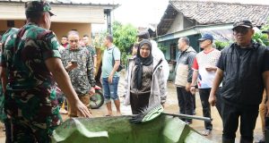 Walikota Bandar Lampung Eva Dwiana Meninjau lokasi terdampak banjir di kecamatan...