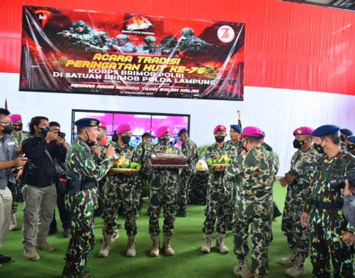 Kapolda Lampung Hadiri upacara Virtual dalam rangka HUT Korps Brimob Polri ke-76, di Makosat Brimob Polda lampung