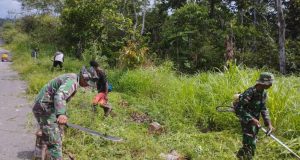 Sambut Natal Satgas Yonif 143/TWEJ Ajak Warga Perbatasan RI Bersihkan Lingkungan