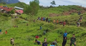 Satgas Yonif 143/TWEJ Berikan Sembako Jelang Peresmian Gereja Di Pegunungan Bintang