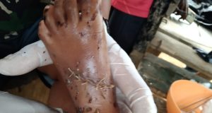 Luka Menganga Terkena Kampak, Warga Perbatasan Datangi Satgas 143TWEJ
