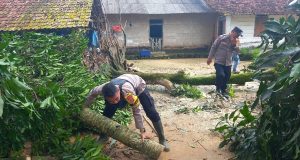 Polres Lamtim Gotong Royong Bantu Korban Angin Puting Beliung