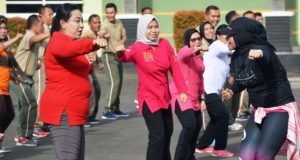 Persit KCK Koorcab Rem 043 PD II/Swj Gelar Senam Bersama Prajurit...