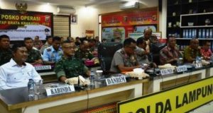 Danrem 043/Gatam Bersama Kapolda Ikuti Video Converence Menkopolhukam