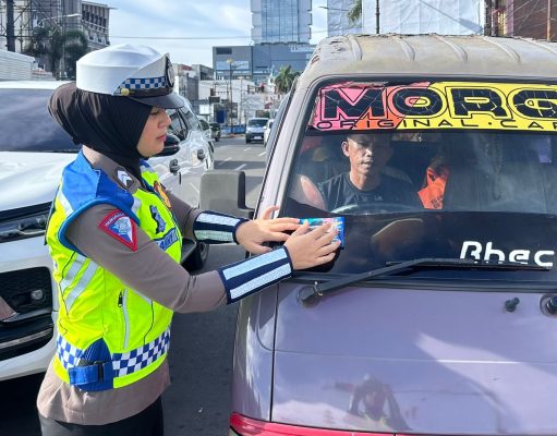 Ops Keselamatan, Sat Lantas Polresta Bandar Lampung Bagikan Pamflet dan Brosur Kepada Pengguna Jalan