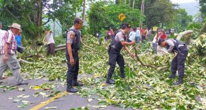 Sat Lantas dan Sabhara Gelar Pengamanan Penebangan Pohon di Jalinbar
