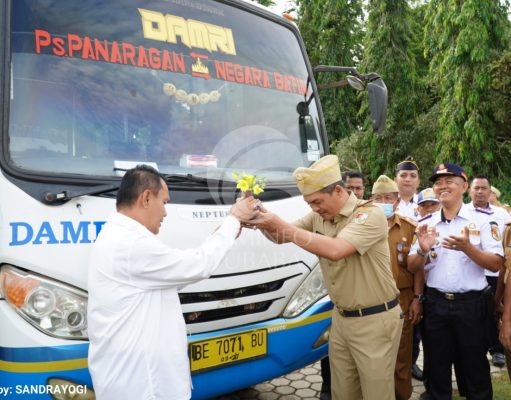 Sekda Tubaba Resmikan Operasional Trayek Bus Damri Perintis Rute Pasar Panaragan Pasar Negara Batin
