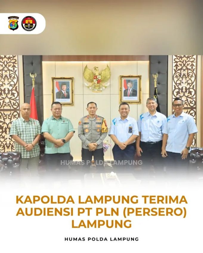 Kapolda Lampung Irjen Pol Helfi Assegaf, S.I.K., M.H. menerima audiensi dan silaturahmi dari PT PLN (Persero) UID Lampung pada Selasa (3/3/2026) pukul 15.00 WIB, di Ruang Kerja Kapolda Lampung.