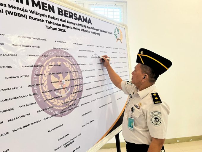 Bandar Lampung – Rumah Tahanan Negara (Rutan) Kelas I Bandar Lampung melaksanakan kegiatan penandatanganan komitmen bersama pembangunan Zona Integritas pada Senin (02/02/2026). Kegiatan tersebut dihadiri langsung oleh Kepala Rutan Kelas I Bandar Lampung, Tri Wahyu Santosa, yang sekaligus bertindak...