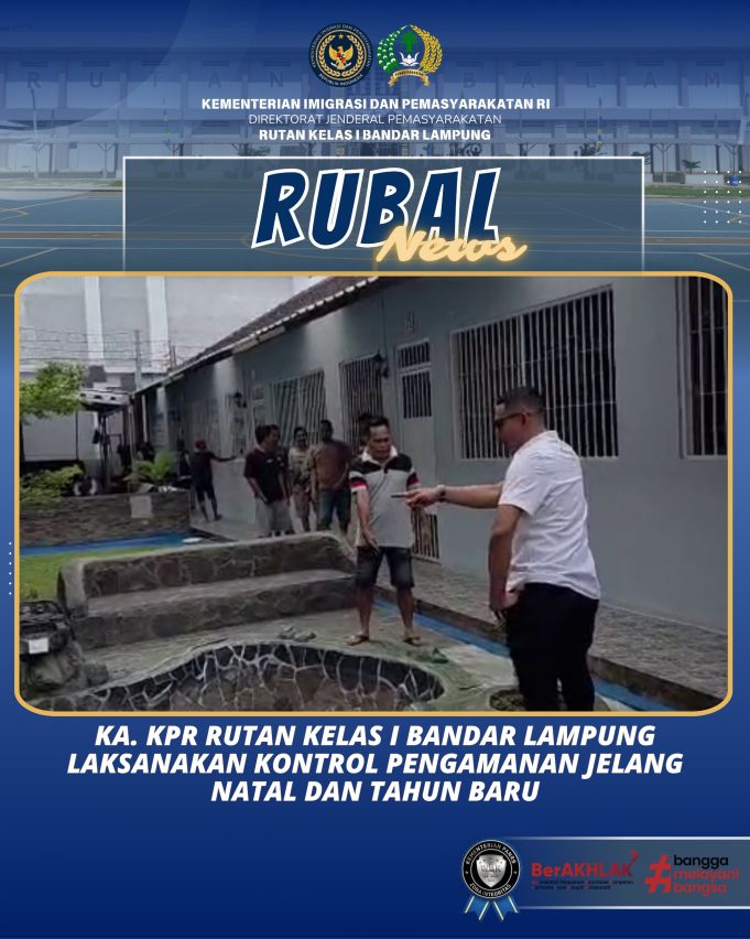 Bandar Lampung – Kepala Kesatuan Pengamanan Rutan (Ka. KPR) Kelas I Bandar Lampung melaksanakan kontrol pengamanan menjelang perayaan Natal dan Tahun Baru guna memastikan situasi keamanan dan ketertiban di lingkungan rutan tetap aman dan kondusif (18/12/2025). Kegiatan ini merupakan...