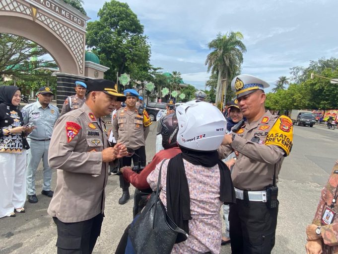Polres Metro menggelar Operasi Zebra Krakatau 2025 di kawasan Traffic Light (TL) Masjid Taqwa Kota Metro, Jumat pagi. Kegiatan ini tidak hanya berfokus pada disiplin berlalu lintas, tetapi juga mengedepankan pendekatan humanis melalui pembagian paket sembako beras, helm, pamflet,...