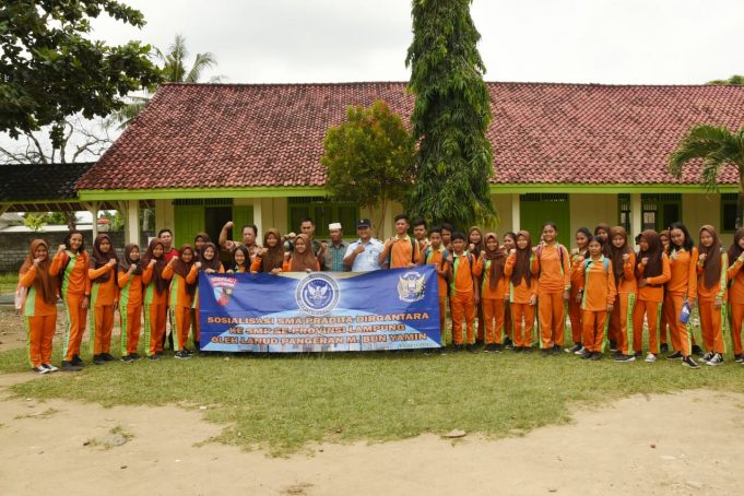 Lampunglive.com - TNI AU. Lanud Pangeran M. Bun Yamin yang diwakili oleh Kadispers Lanud Pangeran M. Bun Yamin Kapten Adm Agwin R. Z. beserta jajaran, berkunjung ke SMPN 1 Banjar Margo, Kabupaten Tulang Bawang dalam rangka sosialisasi SMA Pradita...