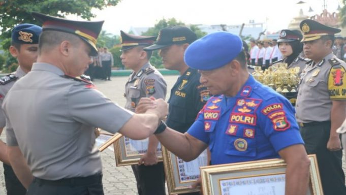 Lampunglive.com – Polda Lampung memberi penghargaan kepada sebanyak 427 personel Polda Lampung dari Kapolda Lampung Irjend Pol Purwadi Arianto. Penghargaan diserahkan oleh Waka Polda Lampung Brigjend Pol Teddy Minahasa, di Lapangan Apel Polda, Kamis (17/1).