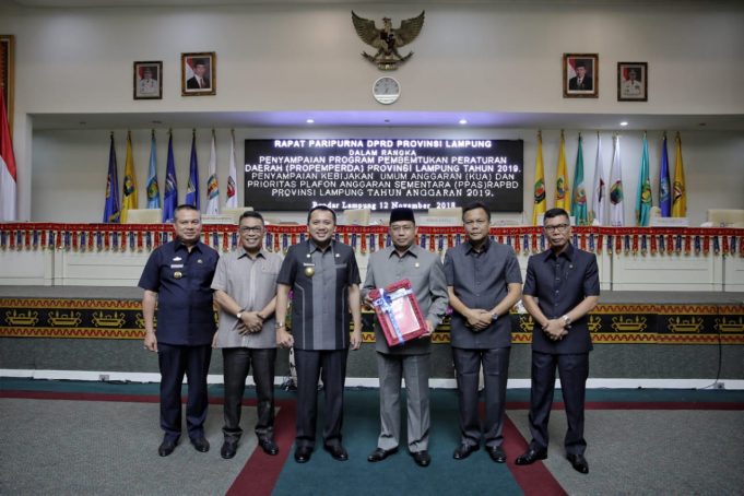 Lampunglive.com — Pemerintah Provinsi Lampung dan DPRD Provinsi Lampung menandatangani nota kesepakatan Kebijakan Umum APBD dan Prioritas Plafon Anggaran Sementara (KUA-PPAS) APBD Tahun Anggaran (TA) 2019 pada rapat paripurna, di Ruang sidang Paripurna DPRD Provinsi Lampung, Senin (15/11).