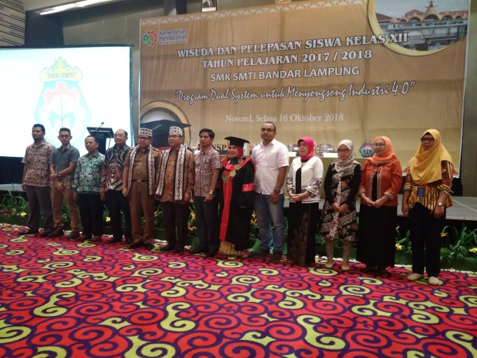 Lampunglive.com - Sebanyak 195 lulusan SMK SMTI Bandar Lampung tahun 2018 mengikuti wisuda, di hotel Novotel Bandar Lampung, Selasa (16/10).