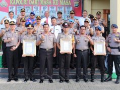 Lampunglive.com - Kapolda Lampung Irjen Pol Drs. Purwadi Arianto memberikan penghargaan kepada anggota Polri yang berprestasi di halaman apel Polda Lampung. Kamis (15/11)