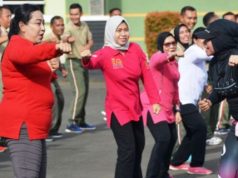 Persit KCK Koorcab Rem 043 PD II/Swj Gelar Senam Bersama Prajurit & PNS